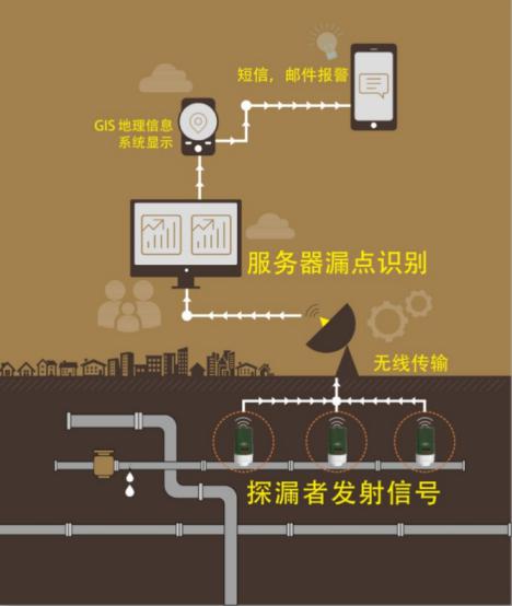 2.技术特点:克服人工探漏弊端,实现地下供水管网“无人值守”,智能高效率探漏;人工智能大数据技术,实时漏损报警,漏损探测精准度高;GIS平台,可视化地下管网漏损系统,管理更便捷。