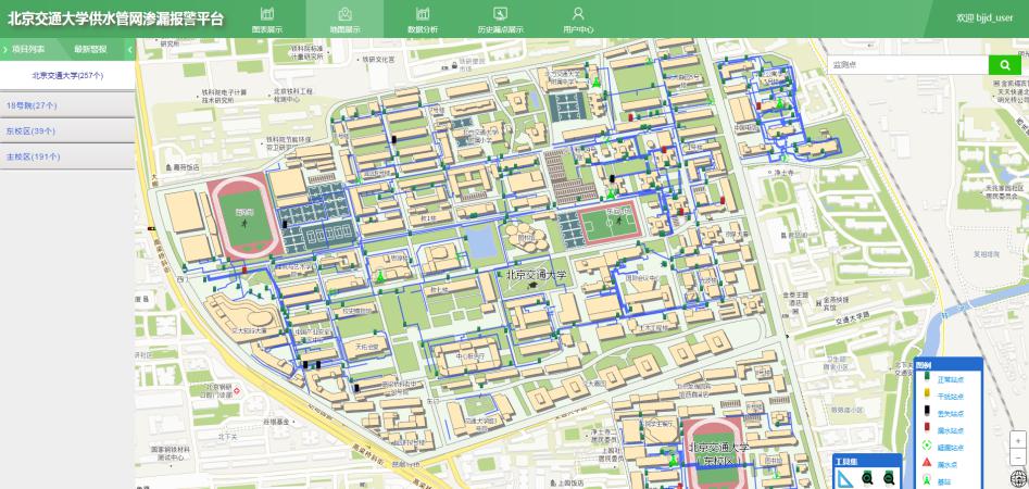 案例2:北京交通大学项目。实施地点:北京交通大学校园;区域特点:管网建成时间较长,历史漏损率高;实施内容及规模:2016年开建,分3期,共监测地下供水管网长度21.9公里,监测点位布局管网探漏仪257个,自组LoRa通讯基站6套,基本实现了校园供水管网监测的全覆盖,建成校园供水管网渗漏报警平台。实施成效:共监测并确认的漏水点107个,累计节水量达150万吨。