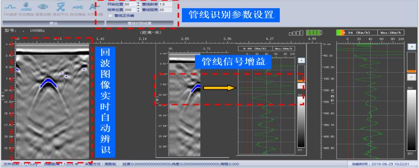 1.设备一管网漏损检测雷达可快速探测地下0~3m深度内的各种材质管线,同时结合雷达波图像辨识漏损位置,集成RTK精确定位后实时坐标跟踪采集,管道自动识别率95%,漏水位置识别正确率90%以上。