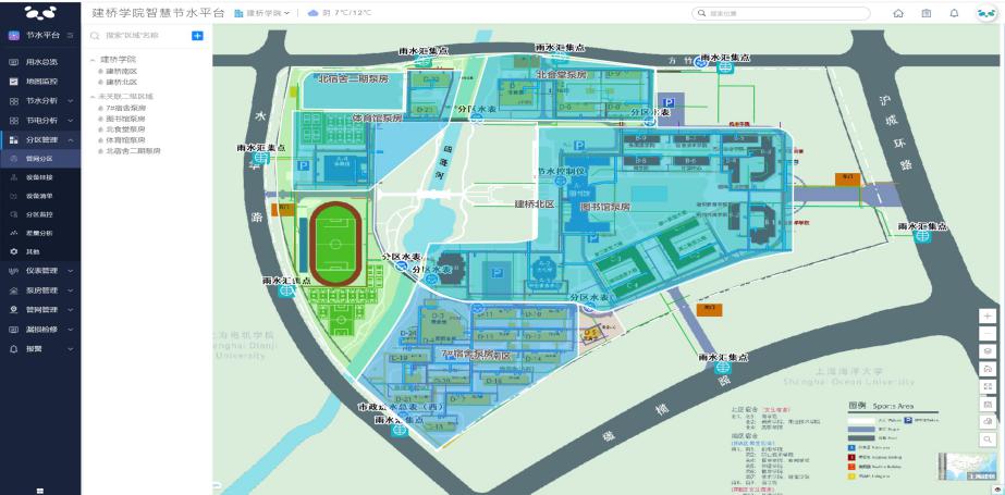 案例2:上海建桥学院应用。结合供水管网现状,采用分区计量漏损监控技术,配套检漏服务,快速发现漏点并处理,从而降低漏损率,结合节水器具、供水设备改造、节水宣传等,实现节水目标。项目实施后,通过实时监控,发现用水异常并处置,实现人均用水量下降,同时可摸清管网资产,辅助分区和管网巡查,降低管网事故发生。