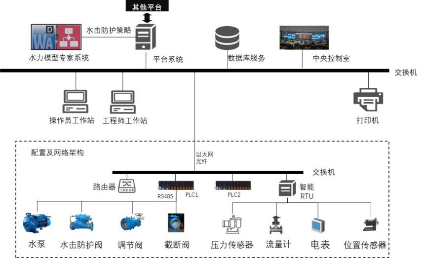 2.技术特点:通过稳态水力模型实现漏损区域定位、瞬态水力模型实现精确定位和爆管溯源,合理配置水击防护阀门和水力组件、优化调度策略,减少新增爆管和漏损;自适应工况变化,通过部件物理特性感知到环境变化同时完成防护动作;智能RTU内置了控制策略专家库,发生断电、事故停机、爆管等应急工况时及时响应,缩短处理时间。