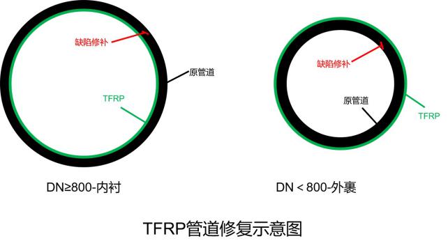 在香港地区使用TFRP粘接法,已经完成60余项工程,共计数百公里的供水管道。例如:香港大堡头供水管道、荃湾供水管道、福田供水管道、九龙水库管道、九龙坑附件管道等。