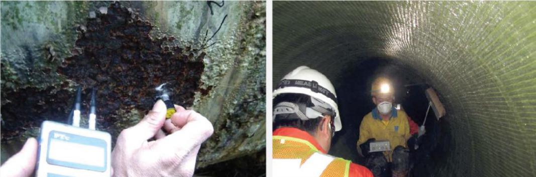 案例2:穿越香港狮子山隧道的供水管道工程。工程地点位于香港狮子山隧道穿过狮子山以南的九龙坳,连接沙田区及九龙,是九龙与新界东部的主要隧道之一,区域特点供水管道位于车行道的下方,不便于进行开挖修复。使用TFRP粘接法对DN1200至DN1500钢管进行非开挖修复,修复规模总长度7.5公里,在之后的检查中运行情况良好。