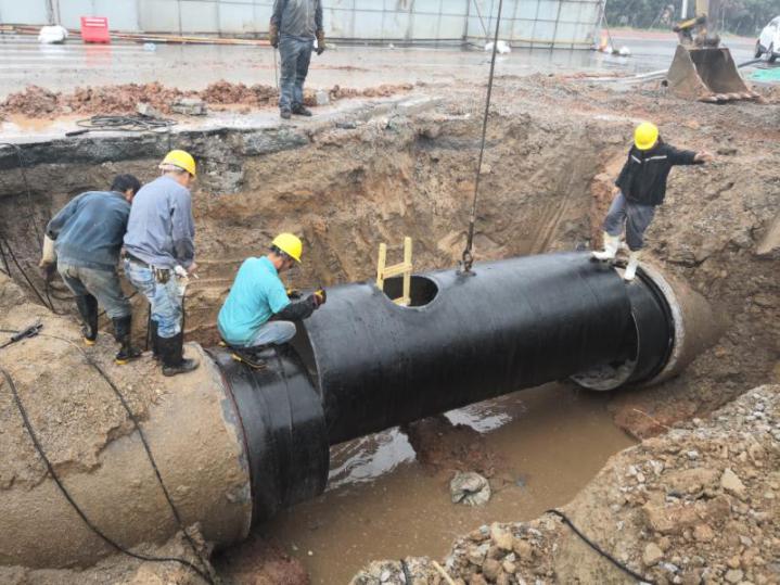 案例1:东江供水主管道-香港段工程。工程地点位于东江供水主管道沿铁路30公里及沿香港粉锦公路11公里段,区域特点供水管道位于车行道下方以及私人高尔夫球场,车行道交通路较大,不便于进行开挖修修复,使用TFRP粘接法对DN1200至DN2400钢管进行修复,修复规模总长度41公里。使用TFRP粘接法修复后,不仅解决了管道锈蚀、漏损,还延长了管道寿命。